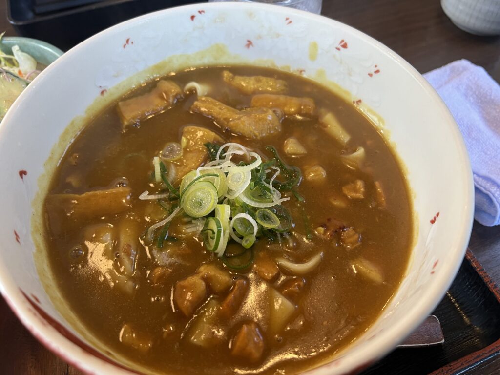 ここのきしめんは幅広で薄いのでカレーが麺によく絡み、とても美味しいです。